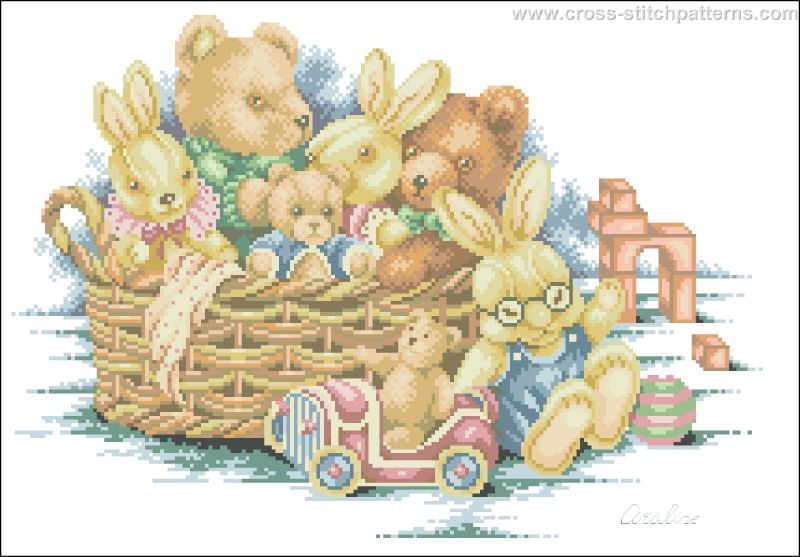 Pattern name: Teddies in basket